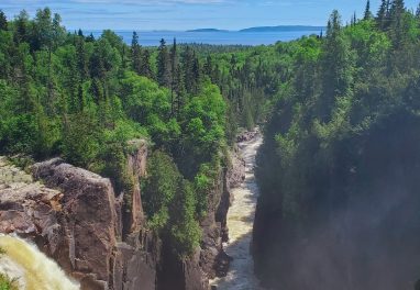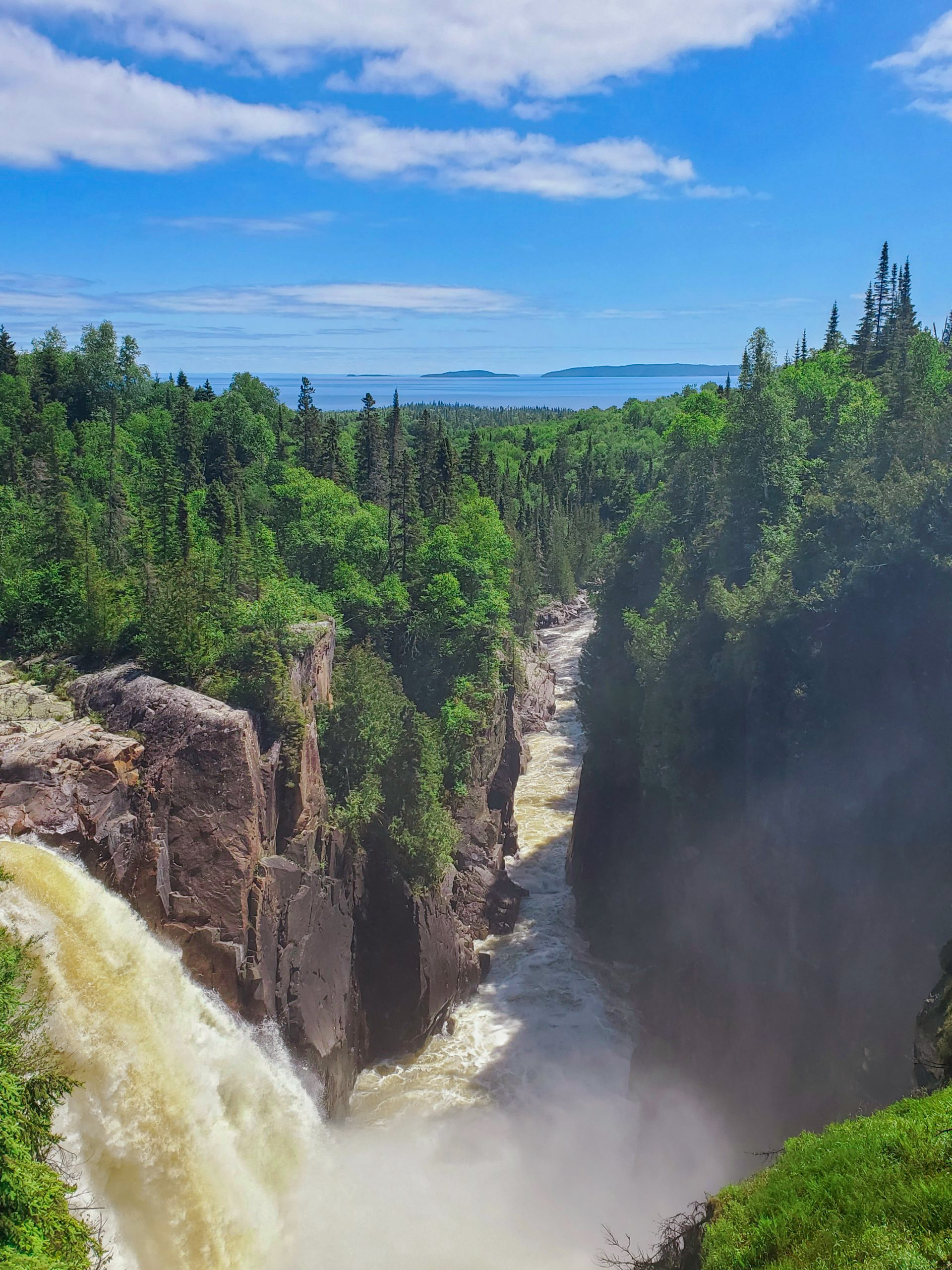 As a result of the diversion, Hays Lake (just North of Terrace Bay) enlarged to massive proportions and the spillway created the falls you see today. An even more interesting aftereffect, the diversion of water south, and away from Hudson Bay, raised water levels in Lake Superior and the rest of the Great Lakes of North America!