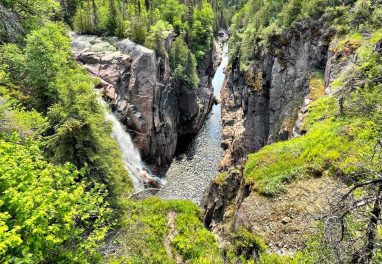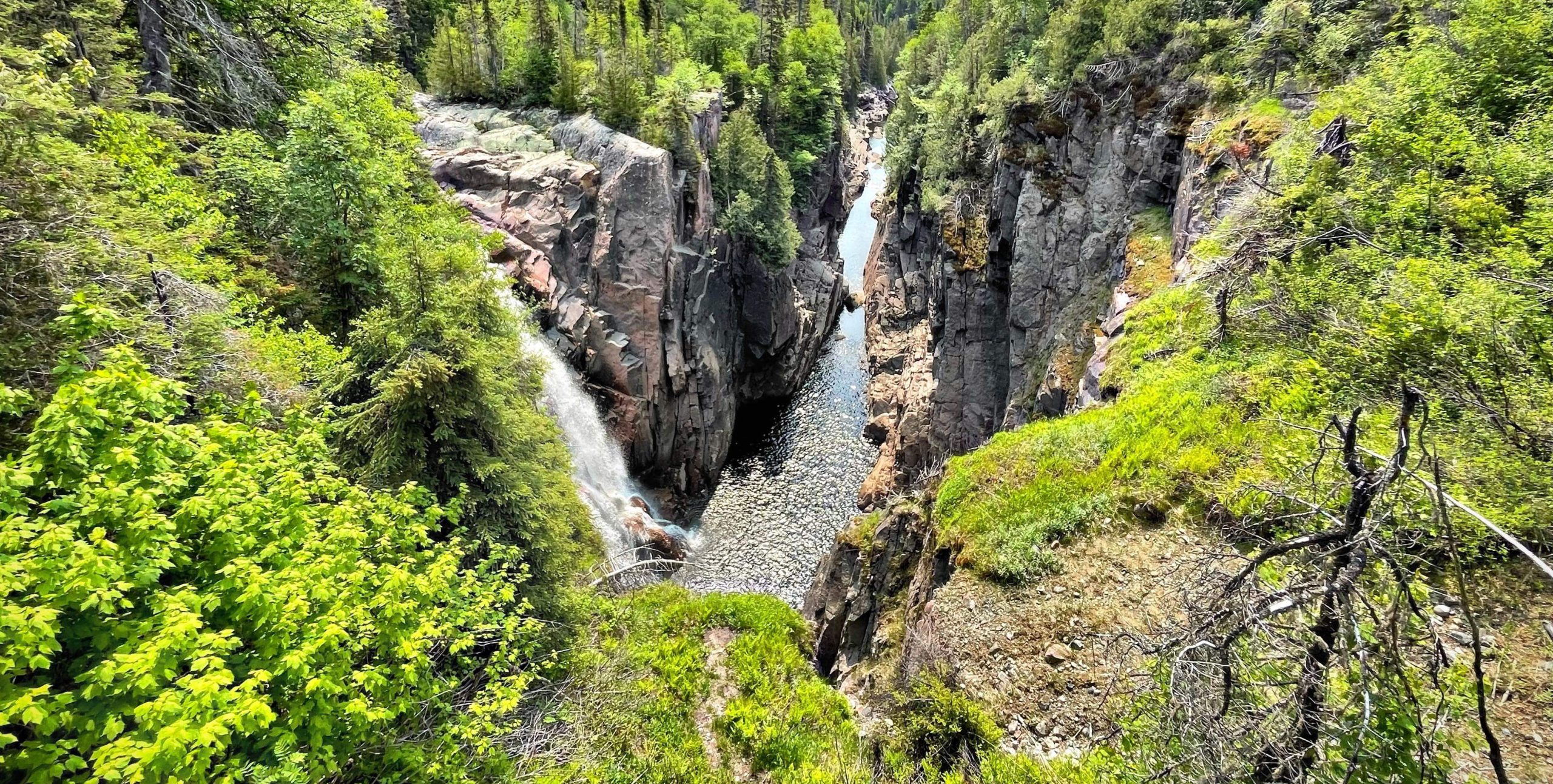The Aguasabon Falls & Gorge is a stunning, must-see attraction in Terrace Bay and along Lake Superior. With a beautiful ferocity in the spring and a serene grace in the summer and fall, this spectacular 100 ft. waterfall cascades into the Aguasabon Gorge—flowing along a 2.6 billion year old rock face.