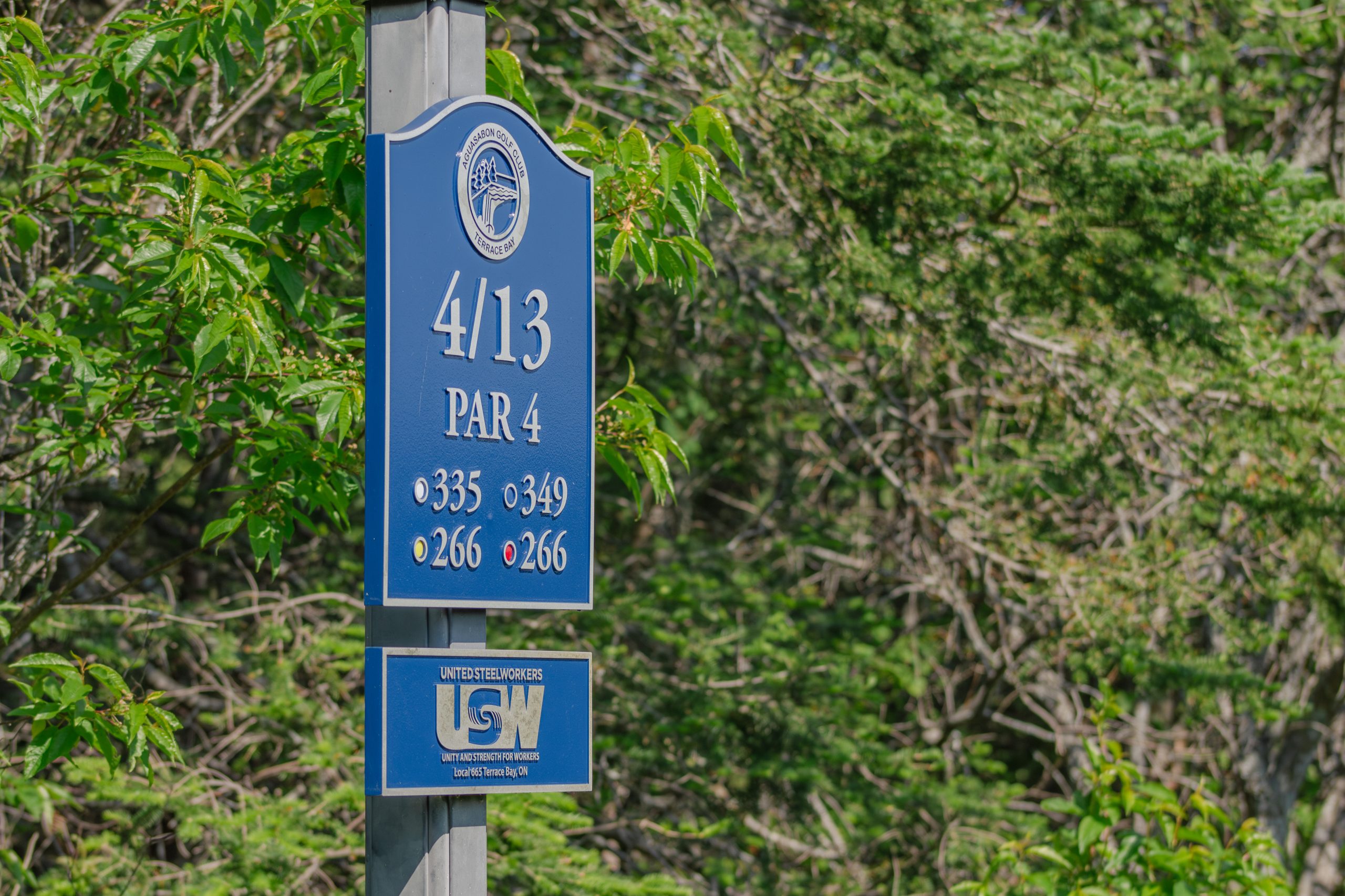Designed by Howard Watson, the course features four sets of tees for different skill levels (Mens, Ladies, Seniors and Juniors)—the greens consisting of bentgrass and the fairways, annual bluegrass. After a rousing round of golf, you can relax on the upper patio at the Aguasabon Clubhouse which features a stunning view of Lake Superior and the course.